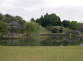 日本庭園的な松があるのに、一方で中国風(琉球風?)な橋や建物があったり・・・これぞ沖縄
