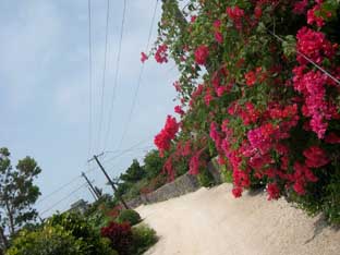 写真は竹富でも一番、ブーゲンビリアの美しい道で撮ったものです。