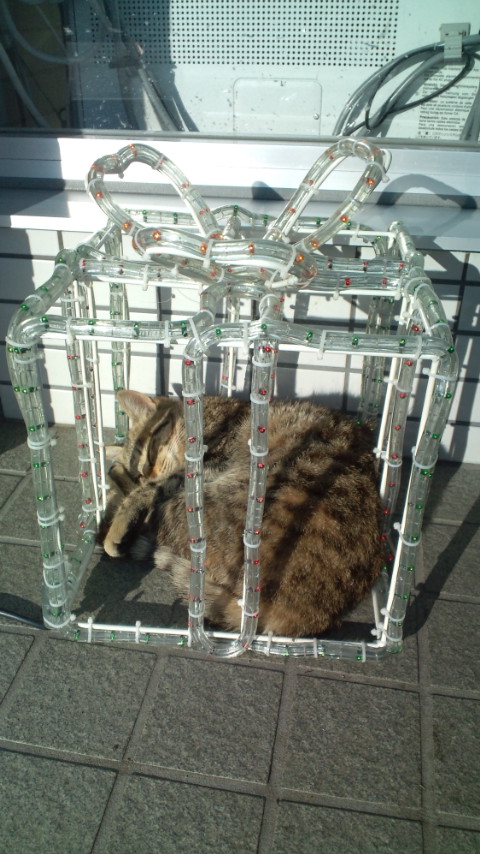電飾の箱の中のほうが少しは暖かいのか、この中で寝てるのを何度か目撃しました